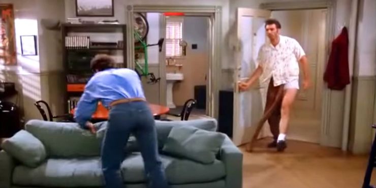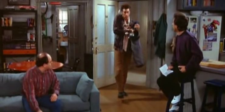 Durante el muy aclamado episodio “Soup Nazi” en la temporada 7, Kramer hace una de sus características entradas deslizantes que conduce a uno de sus momentos más divertidos de todos los tiempos. Mientras Jerry y su novia se despiden de George, la mujer llama a George un tipo raro tan pronto como se va. Cuando la puerta se abre repentinamente, la audiencia espera que sea George nuevamente, pero es Kramer quien irrumpe sin previo aviso.