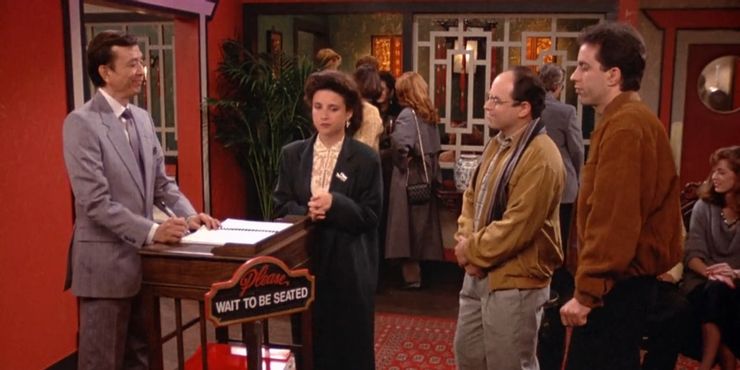 Los dolores de hambre de Elaine y su creciente frustración son algunos de los momentos clásicos en Seinfeld“El restaurante chino”. El anfitrión de Hunan 5th Avenue les dice repetidamente a ella, Jerry y George que tendrán una mesa en “cinco, diez minutos”. Mientras esperan sentarse, siguen sucediendo cosas extrañas. Un grupo numeroso y el Sr. Cohen de Park Avenue son admitidos de inmediato, pero la ventana de espera de los amigos de “cinco, diez minutos” permanece sin cambios.