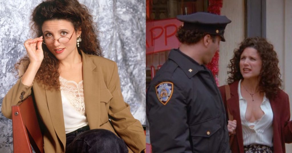 Además de ser la única miembro femenina de la pandilla de cínicos de Jerry Seinfeld, Elaine Benes también es la mejor vestida. Interpretada por Julia Louis-Dreyfus, Elaine definió el estilo de los años 90 con sus vestidos estampados florales, jeans, combos de chaqueta y chaquetas de cuero.