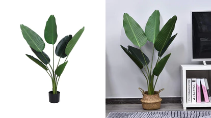 Otra opción clásica y estilosa es esta propuesta a base de hojas grandes de palma. Mide unos 120 centímetros de alto y es perfecta para adecuarse a la decoración de habitaciones o espacios diversos. Junto con la planta se incluye una maceta con peso para contribuir a que permanezca estable. Es un producto con una nota media muy positiva en Amazon (4,6 estrellas sobre 5) y que también puede adquirirse en un tamaño mayor de 180 centímetros.