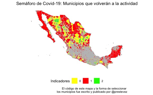 El 18 de abril, Patricio Rodrigo Estévez-Soto, estudiante de University College London, publicó un código para identificar estos municipios. Aristegui Noticias retomó su publicación para elaborar este mapa, el cual es alimentado con los datos abiertos de la Secretaría de Salud.