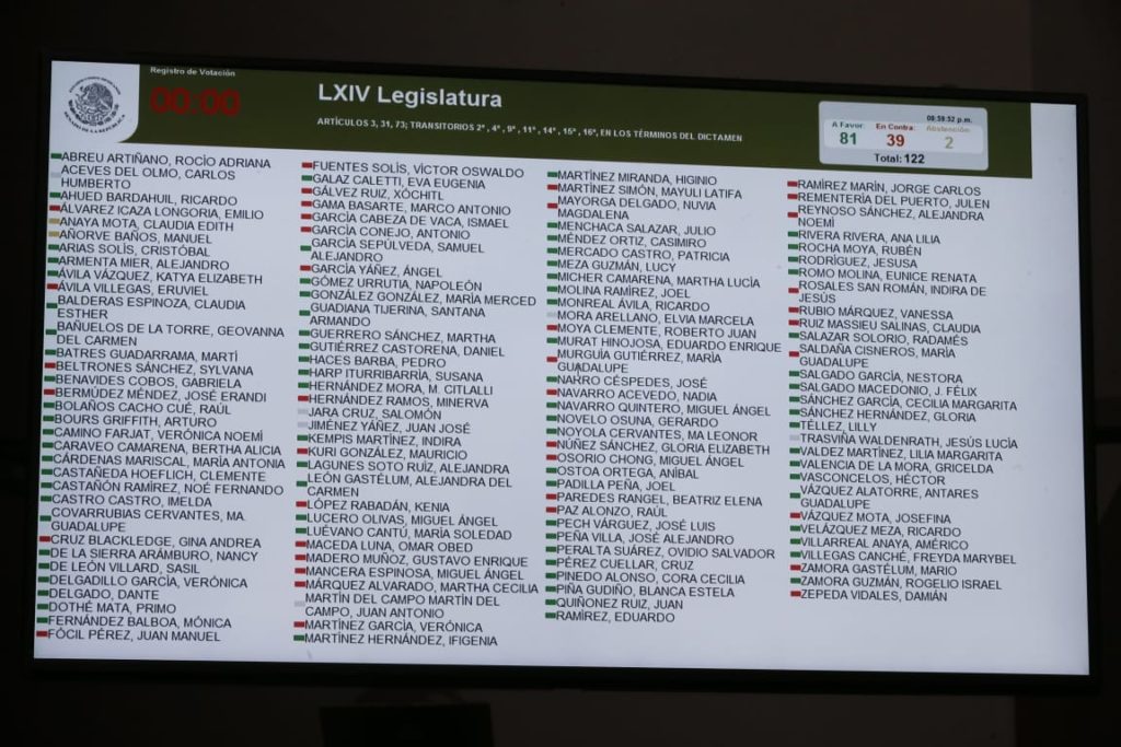El presidente de la Mesa Directiva del Senado, Martí Batres Guadarrama, anunció que debido a que el proyecto de decreto no alcanzó las dos terceras partes, “se devuelve a la Cámara de Diputados con las modificaciones aprobadas y solamente lo aprobado por esta asamblea”.