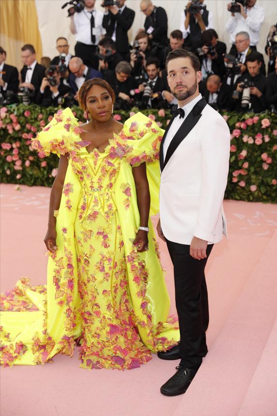 Por un lado, la ex número uno del mundo de la WTA, que co-presentó la gala junto a Harry Styles, lució un vestido amarillo neón que combinó con unas bambas ‘Nike’ del mismo tono. Su marido, el empresario Alexis Ohanian, le acompañó al evento luciendo un traje negro y blanco que no combinaba con el atuendo de la deportista.