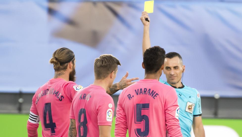 El colegiado mostró la tarjeta amarilla por la acción, mientras que el VAR, dirigido por Gil Manzano, no intervino para avisar al árbitro en una potencial agresión que podría haber significado la expulsión del jugador del Real Madrid.