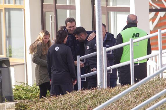 Antes de que los rojiblancos saltaran al verde De Marcos ha seguido con su recuperación, conduciendo el balón, sorteando siluetas y disparando a puerta. Lo hacía con la pierna izquierda, la que fue sometida a una operación de tobillo hace unos dos meses.