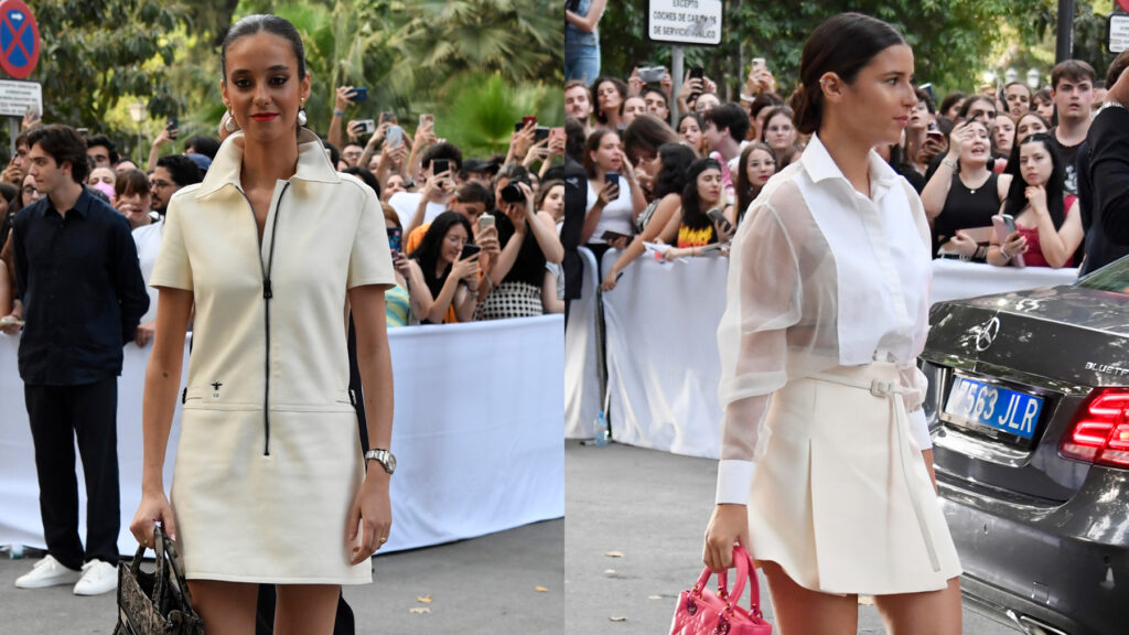Durante la noche del miércoles se dejó ver junto a su padre, Jaime de Marichalar luciendo un mono asimétrico en la exclusiva fiesta de la firma. Esta vez, se ha decantado por un vestido corto en color beige con cuello camisa y cremallera central de manga corto. Ha combinado esta prenda con unas sandalias negras y un bolso modelo Dior Book Tote pequeño de 2.500 euros. Ha recogido su larga melena con una coleta.