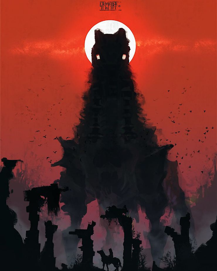 Sombra del coloso es mínimo tanto en el juego como en las imágenes, por lo que solo tenía sentido Eión Marrón para darle al juego un tributo mínimamente gratificante. Pocas otras piezas de arte de los fanáticos representan lo que el juego está insinuando tan bien como este, que es que Wander está tomando vidas y volviéndose malvado él mismo.
