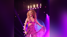 Este vestido rosa con estampado de leopardo acaparó la atención cuando Shakira interpretó “Hips don’t lie” en Chicago. El vestido ahora estara en Los Angeles.(Getty Images)