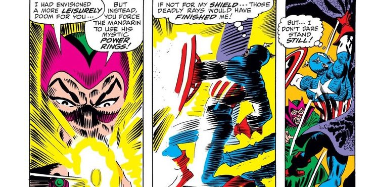Aunque Shang-Chi e Iron-Man han sido los principales enemigos del mandarín a lo largo de los años, también se ha enfrentado a otros héroes de Marvel en un nivel uno a uno. En Capitán América # 125, Steve Rogers lo detuvo mientras intentaba matar a soldados de ambos lados para aumentar el conflicto y prolongar la guerra. De esta manera, continuaría haciendo negocios con generales corruptos.