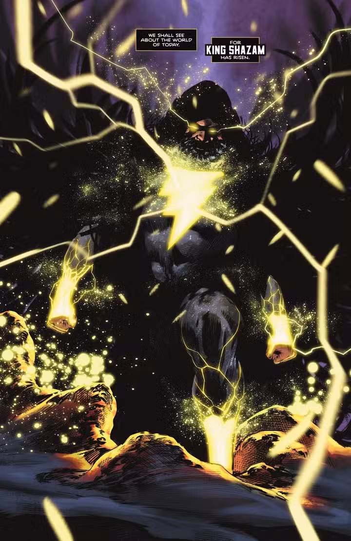 en la actualidad Superman absoluto #18 – de Jason Aaron, Rafa Sandoval, Ulises Arreola y Becca Carey – los fanáticos conocen a ‘King Shazam’. Este eco oscuro del superhéroe más inocente de DC es en realidad Teth Adam, el personaje conocido en el canon principal de DC como el antiheroico Black Adam.