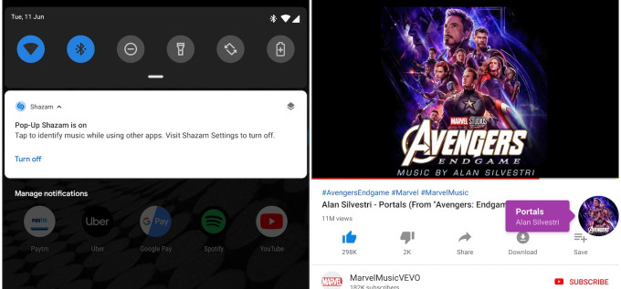 La nueva función le permite a Shazam rastrear la señal de audio que emite de otras aplicaciones, por lo que no depende completamente de la salida del entorno y del altavoz del teléfono. La aplicación está tocando la señal de audio mediante una notificación persistente que flota y puede ser arrastrada, como las de Facebook Messenger, y puede activarse con un solo toque.