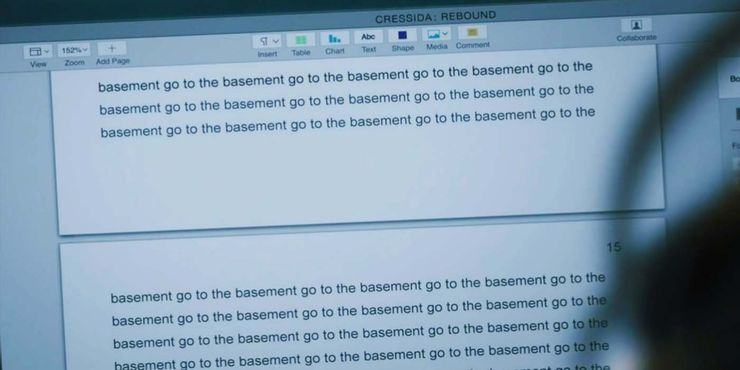 En el resplandor, una de las grandes señales de que algo anda muy mal con Jack Torrance es cuando su esposa, Wendy (Shelly Duvall), descubre que ha estado escribiendo sin cesar “Todo trabajo y nada de juego hacen de Jack un chico aburrido”. Para el espectador de Valle resplandecienteuna referencia a esta escena de el resplandor deja en claro cuán serios se están volviendo los problemas con Pat y que ella realmente está perdiendo el control. En Valle resplandeciente En el episodio 3, Pat descubre que ha escrito la frase “Ve al sótano” repetidamente y sigue las instrucciones de Rosemary hasta las entrañas de su casa.