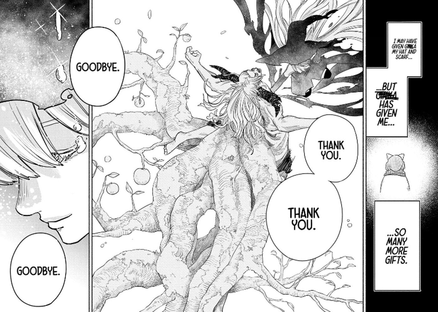 En el capítulo 26, traducido por Casey Loe, Glüna finalmente toma la batalla en sus propias manos. Dado que la magia más típica no ha logrado afectar a Magaraka, decide usar una peligrosa magia prohibida para hacer el trabajo. Esta magia le permite usar sus recuerdos felices como ataques al precio de olvidarlos después. Esto funciona, obligando a Magaraka a huir, pero también deja a Glüna como un caparazón vacío, habiendo olvidado toda la felicidad que Ginka trajo a su vida. Es un destino trágico que es lo más oscuro que ha hecho el manga hasta ahora.
