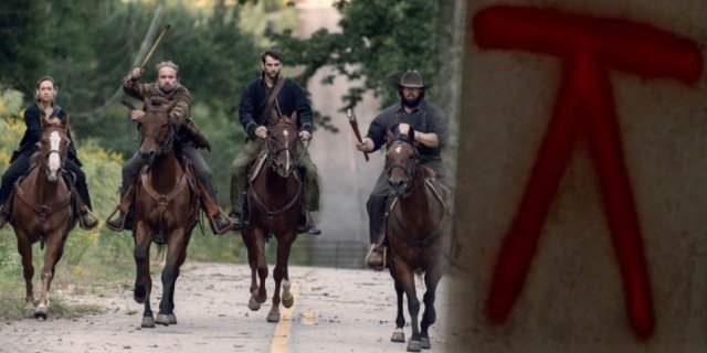 Ese misterioso símbolo rojo volvió a aparecer en una carta de chantaje que reveló que el grupo era "piratas" que, en 913, llegaron a un acuerdo con el rey Ezequiel (Khary Payton) y Carol (Melissa McBride) para actuar como escoltas que protegen las carreteras, permitiendo que los viajeros estén seguros. acceso al conjunto de la feria para reunir Kingdom, Hilltop, Alexandria y Oceanside.