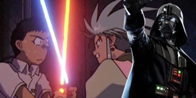 Sorprendentemente, el anime más parecido Estrella Guerras es uno que no necesariamente esperarías. Tenchi Muyo también es una franquicia con varias iteraciones y continuidades diferentes, pero la que la mayoría de los fanáticos probablemente reconocerán es Tenchi MuyoOVA original de ejecución o Universo Tenchi desde que corrieron en Toonami cuando atrás. La serie sigue a Tenchi Masaki, quien accidentalmente libera a Ryoko, el pirata espacial, y queda atrapado en todo tipo de travesuras. Pronto descubre que tiene vínculos con una antigua línea de sangre espacial, obtiene poderes místicos y empuña el Tenchi-ken, una espada que es básicamente un sable de luz. Es como si agregaras cosas locas de comedia romántica a ¡Guerra de las Galaxias!
