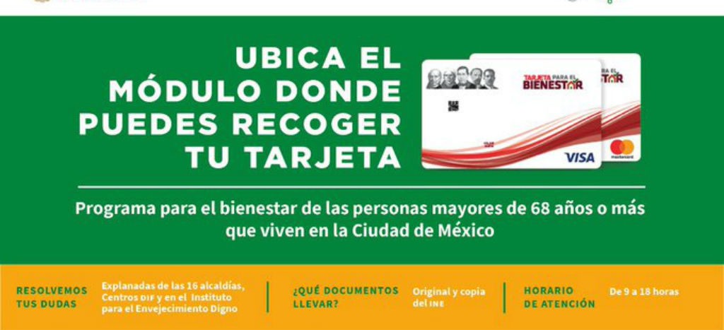 Los adultos mayores de la Ciudad de México que no han recibido la Tarjeta de Bienestar pueden acudir a cualquiera de los 156 módulos a recogerla, presentando una copia y el original del INE.