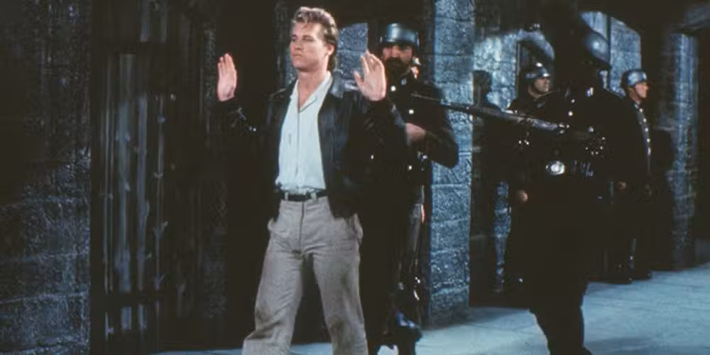 Su canto y baile son aspectos de Kilmer que rara vez se han mostrado en las películas posteriores de Kilmer, pero hay otro aspecto que vemos en ¡Ultrasecreto! lo cual considero su cualidad más subestimada como intérprete. Es conocido por sus películas de acción, pero ¿qué lo hace ¡Ultrasecreto! Una de las películas más subestimadas de los años 80 es el ritmo cómico de Kilmer.