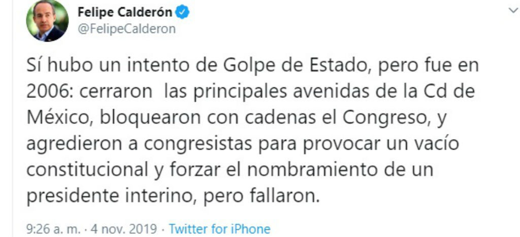 — Felipe Calderón (@FelipeCalderon) November 4, 2019