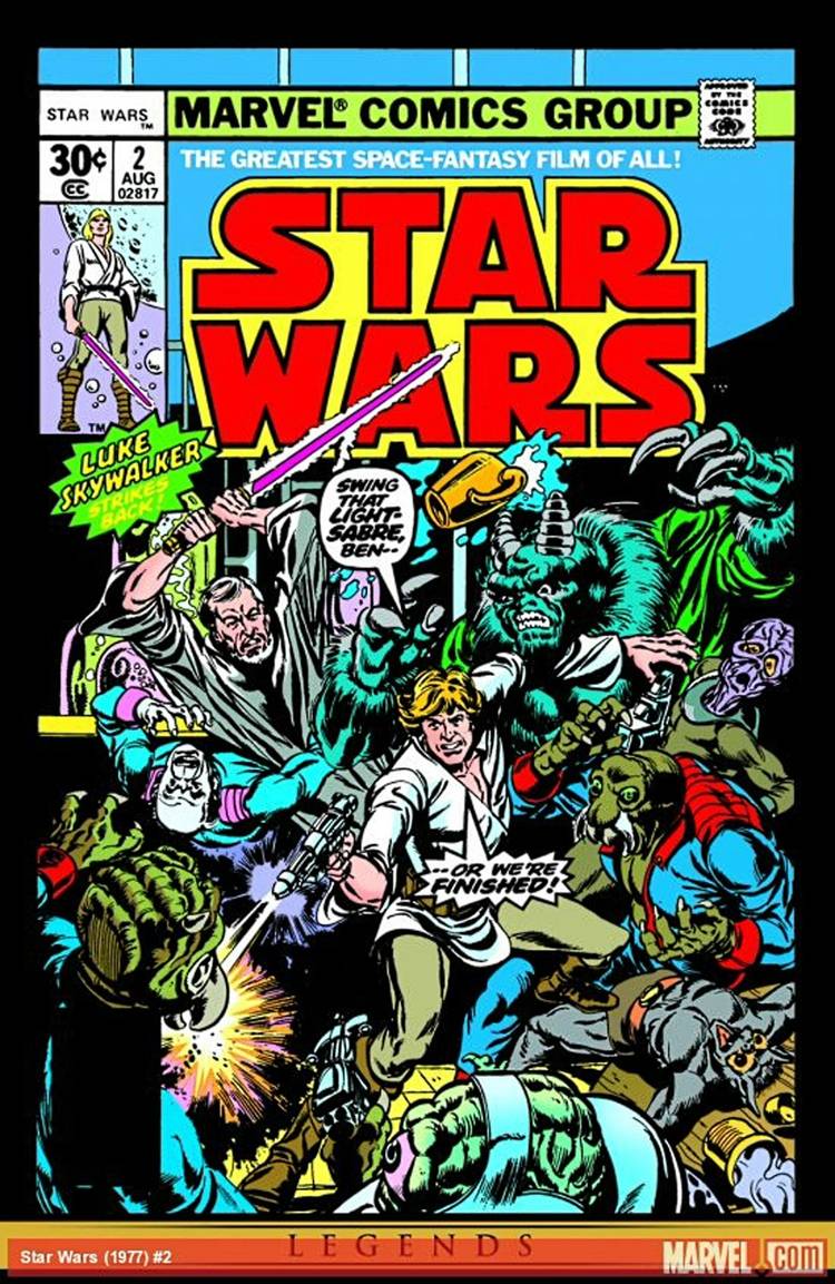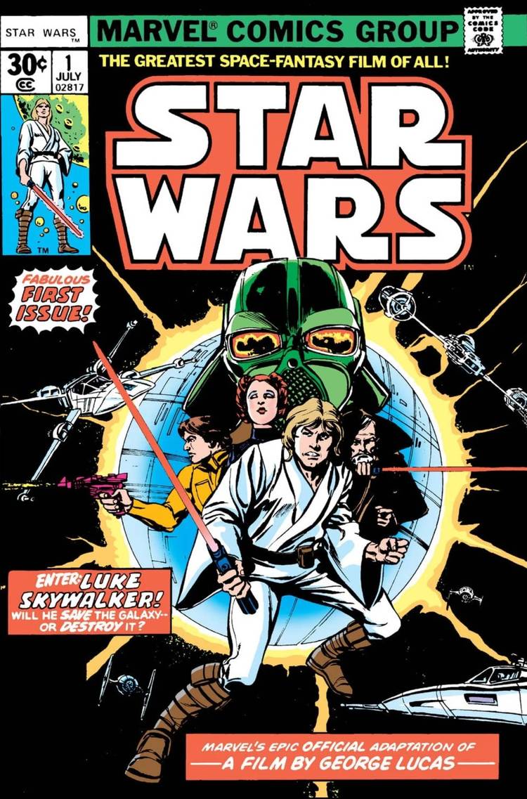 Aunque había mucha resistencia a la idea, Thomas pudo asegurar los derechos para Star Wars para Marvel antes del lanzamiento de la película en 1977 “.No sé cómo Roy lo hizo“, Escribe Shooter, “Pero, Roy hizo el trato y publicamos Star Wars.” Star Wars #1 llegó a los Racks de cómics el 12 de abril de 1977, un mes y medio completo antes del lanzamiento del 25 de mayo de la película. Viniendo del equipo creativo de Thomas y Howard Chaykin, los primeros seis números adaptaron la película antes de continuar con las nuevas aventuras.