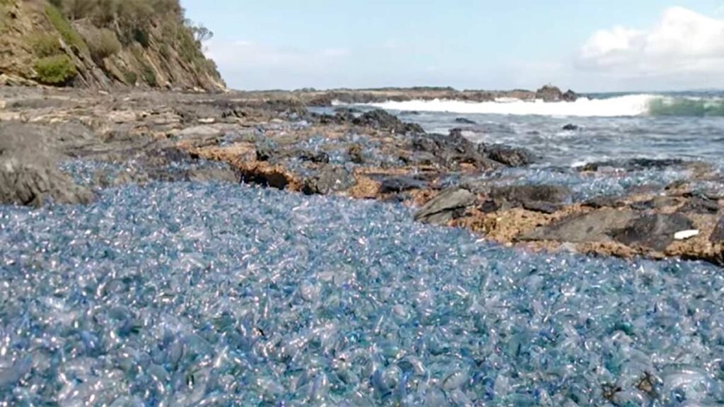 Los habitantes y turistas de la playa de Barlings de Nueva Gales del Sur (Australia) se despertaron una mañana enfurecidos por la falta de respeto de los humanos hacia el medio ambiente. Un enfado pasajero, ya que se dieron cuenta que no era plástico lo que cubría sus costas sino un extraño organismo denominado Physalia physalis. Una especie similar a las medusas que se conoce comúnmente como fragata portuguesa había inundado la playa dejando un paraje inimitable.