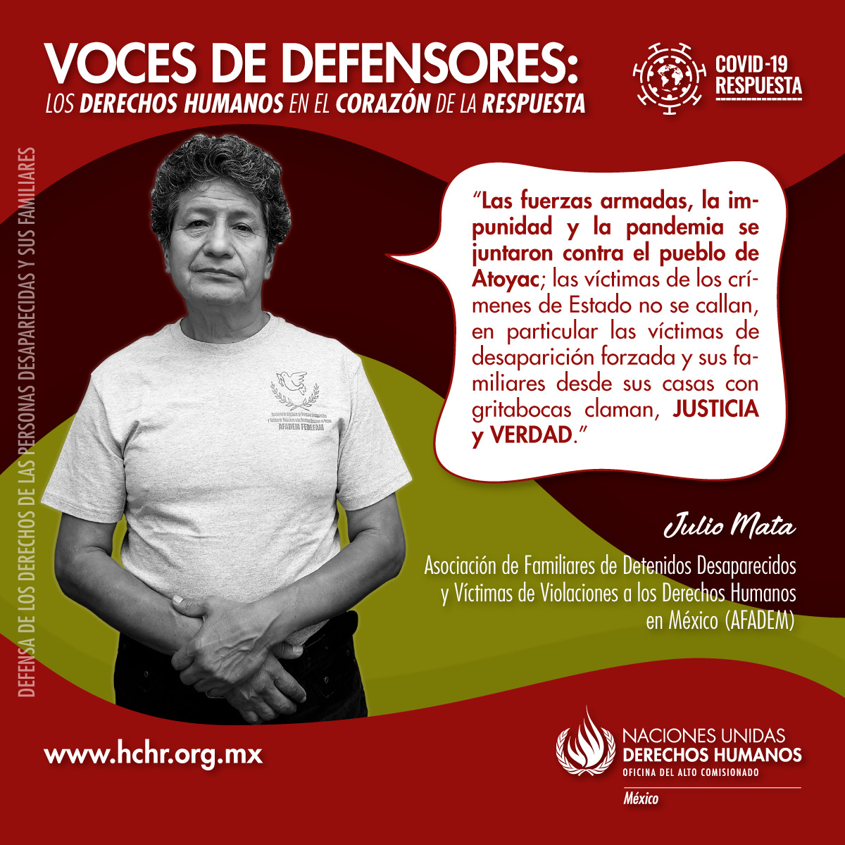 Julio Mata, de la Asociación de Familiares de Detenidos Desaparecidos y Víctimas de Violaciones a los Derechos Humanos, dice que las víctimas de los crímenes de Estado no se callan: