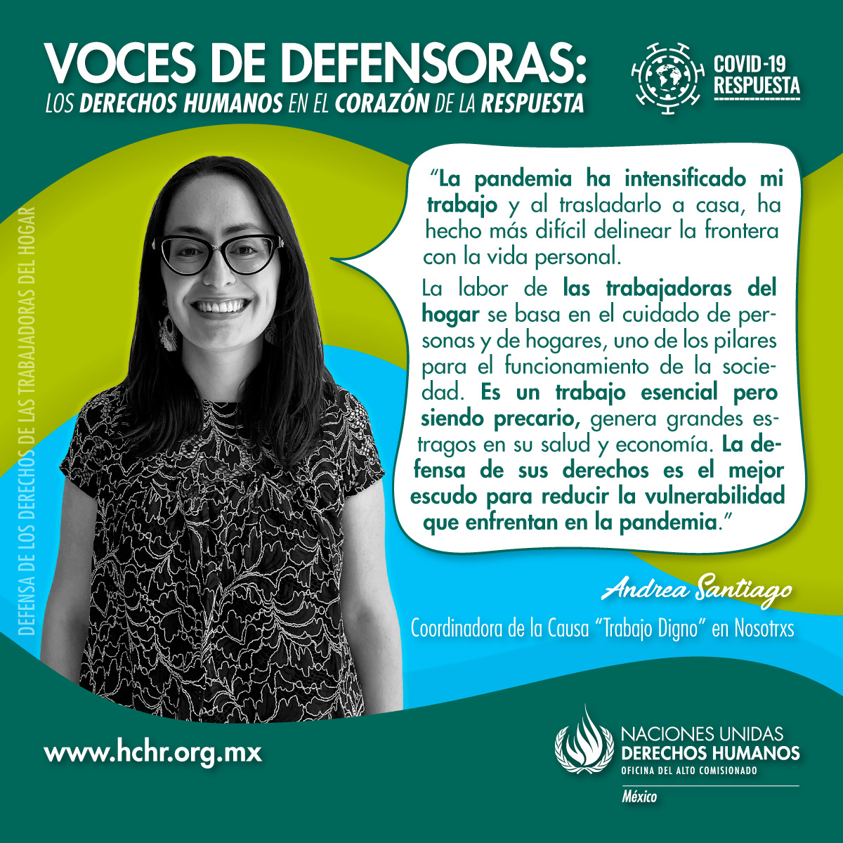 Andrea Santiago, coordinadora de la Causa Trabajo Digno en Nosotrxs, anota que la defensa de los derechos de las trabajadoras del hogar es el mejor escudo para reducir la vulnerabilidad que enfrentan en la pandemia: