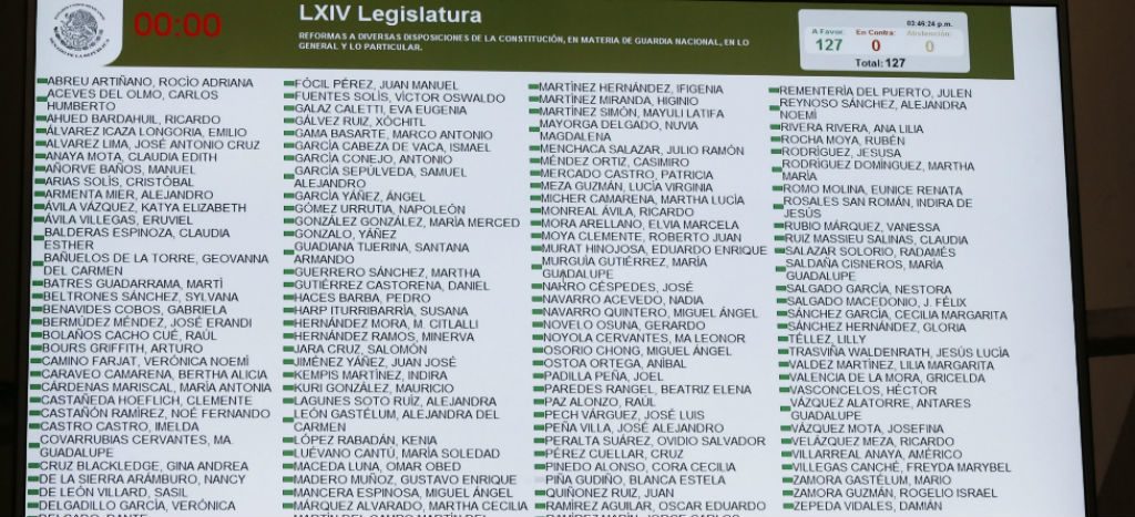 En el Senado se atendieron las propuestas de la sociedad civil, se escucharon las observaciones de los organismos internacionales y se construyó un dictamen de consenso con todas las oposiciones, lo cual permitió que la creación de una Guardia Nacional de carácter civil se aprobara por unanimidad. Las razones que expresaron las oposiciones y las organizaciones sociales para rechazar la propuesta de constitucionalizar la militarización de la seguridad pública fueron tomadas en cuenta y se negoció una alternativa aceptable para todas las partes. Sin contravenir el derecho convencional, se otorga base constitucional a la actuación temporal de las fuerzas armadas y se establece una fecha cierta para su regreso a los cuarteles.