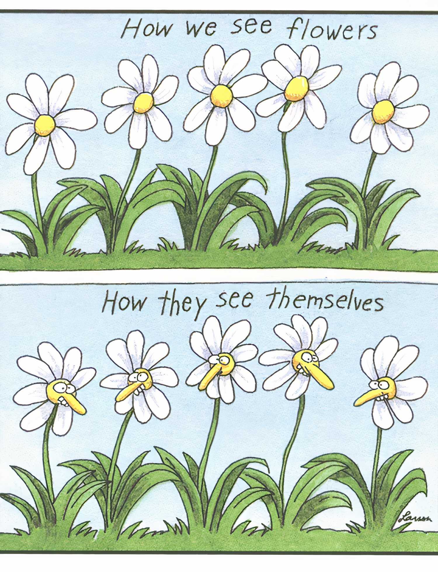 De sus numerosas tiras, está claro que Gary Larson ama absolutamente la naturaleza. Este Lado lejano La tira se divide en dos secciones, la primera eche un vistazo a un grupo de margaritas regulares y ordinarias y etiquetada “Cómo vemos flores“. Justo debajo es otro panel etiquetado”Como se ven a sí mismos“Y las cinco margaritas ahora tienen caras con narices largas y dientes grandes, haciéndolos parecer más tradicionales Lado lejano personajes.