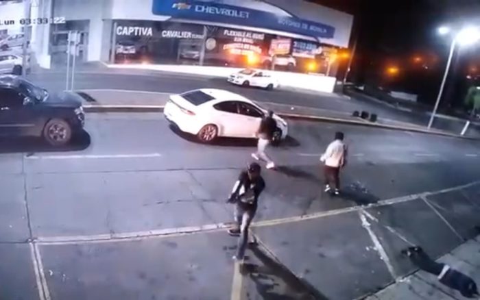 En otra escena se puede apreciar como un hombre vestido de blanco cruza la avenida, para perderse en el interior de la colonia Las Américas. En la acera que cruza la calle, un par de personas se resguardaron en un auto blanco.