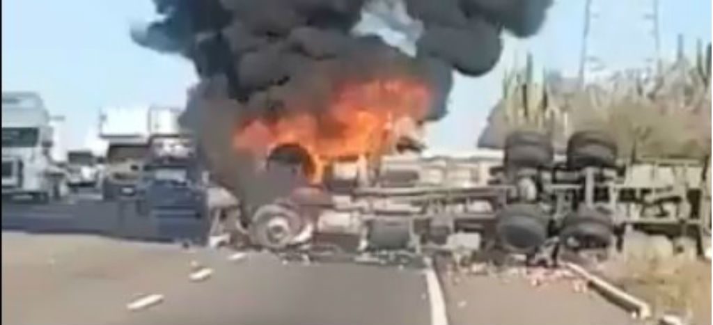 ? En Baja California Sur se reporta el choque de un tráiler contra dos vehículos, situación que provoco un incendio en la carretera Internacional Benito Juárez.
