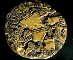 “Es un gran monolito que no fue terminado: detrás, se aprecia parte de la piedra que estaba siendo trabajada, aunque sí nos quedó toda la representación de la figura, en la cual observamos en el centro a una deidad muy importante: el rostro de la representación solar, Tonatiuh”.