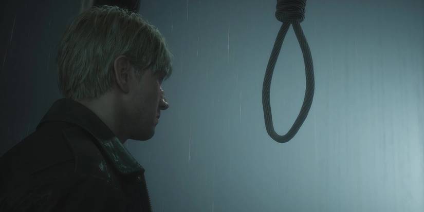 La soga correcta hará que James se despierte en una morgue. Tirar del lazo equivocado envía a James a un pozo oscuro e infestado de enemigos. Sin embargo, aterrizar en boxes no significa que el juego se acabe. Puedes simplemente correr hacia la escalera en la parte de atrás y regresar al patio para resolver el problema. Remake de Silent Hill 2 El rompecabezas de la horca otra vez.