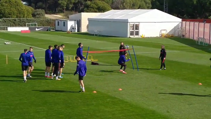 A las 11.30 horas comenzó a trabajar un grupo de futbolistas que, en teoría, no estarán en el once inicial del cuadro colchonero ante los de Lopetegui. Estaban Vitolo, Diego Costa, Thomas (sancionado para este encuentro),