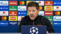 Diego Simeone, entrenador del Atlético de Madrid, compareció ante los medios de comunicación en la previa del choque ante el Liverpool en la sala de prensa de Anfield, horas después de que o hiciese Jurgen Klopp.