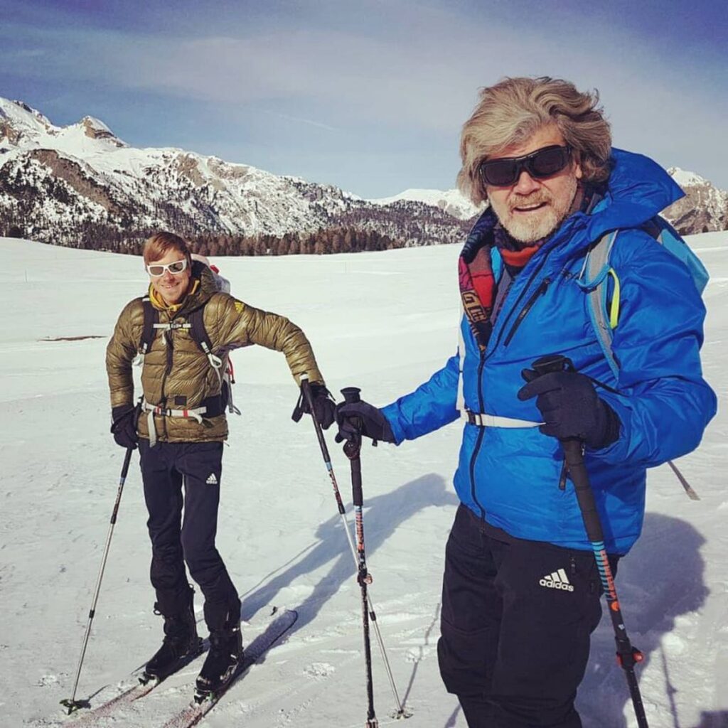 Entrevistado el pasado verano por el Corriere del Veneto, Simon Messner recordaba una infancia de miedo a las alturas, vértigos y desapego hacia la montaña “porque el tema estaba ya demasiado presente en casa”. Si la lógica parece indicar que Simon es alpinista por el interés de su padre, nada más falso. Simon se interesó por el alpinismo por otro motivo. “Deseaba comprender por qué tenía vértigo, por qué me asustaba cada vez que me hallaba a más de dos metros del suelo. Así, superando mis límites, me convertí en alpinista”. Su padre nunca lo llevó a escalar, o a las montañas. Sencillamente, no estaba allí, explica Simon, que no llama “padre” a su progenitor sino Reinhold, también padre de tres hijas y que recientemente se casó por tercera vez. Simon no fue invitado a esta boda: “No acepto que su esposa tenga la edad de mi hermana. Pero él es Reinhold: si tiene algo en mente, lo hace. Yo mantengo la distancia, ya no es como antes. Nunca ha sido fácil. No deja mucho espacio libre para los demás, pero cuando yo era joven era más sencillo. Hoy ya no quiero intentar que salga bien: yo tengo mi vida y él la suya”. Incluso cuando ambos trabajan juntos, Simon asegura: “Me hace sufrir en el set, pero él es el jefe, siempre. La nuestra nunca ha sido una relación padre-hijo; él no es un padre como los demás”.