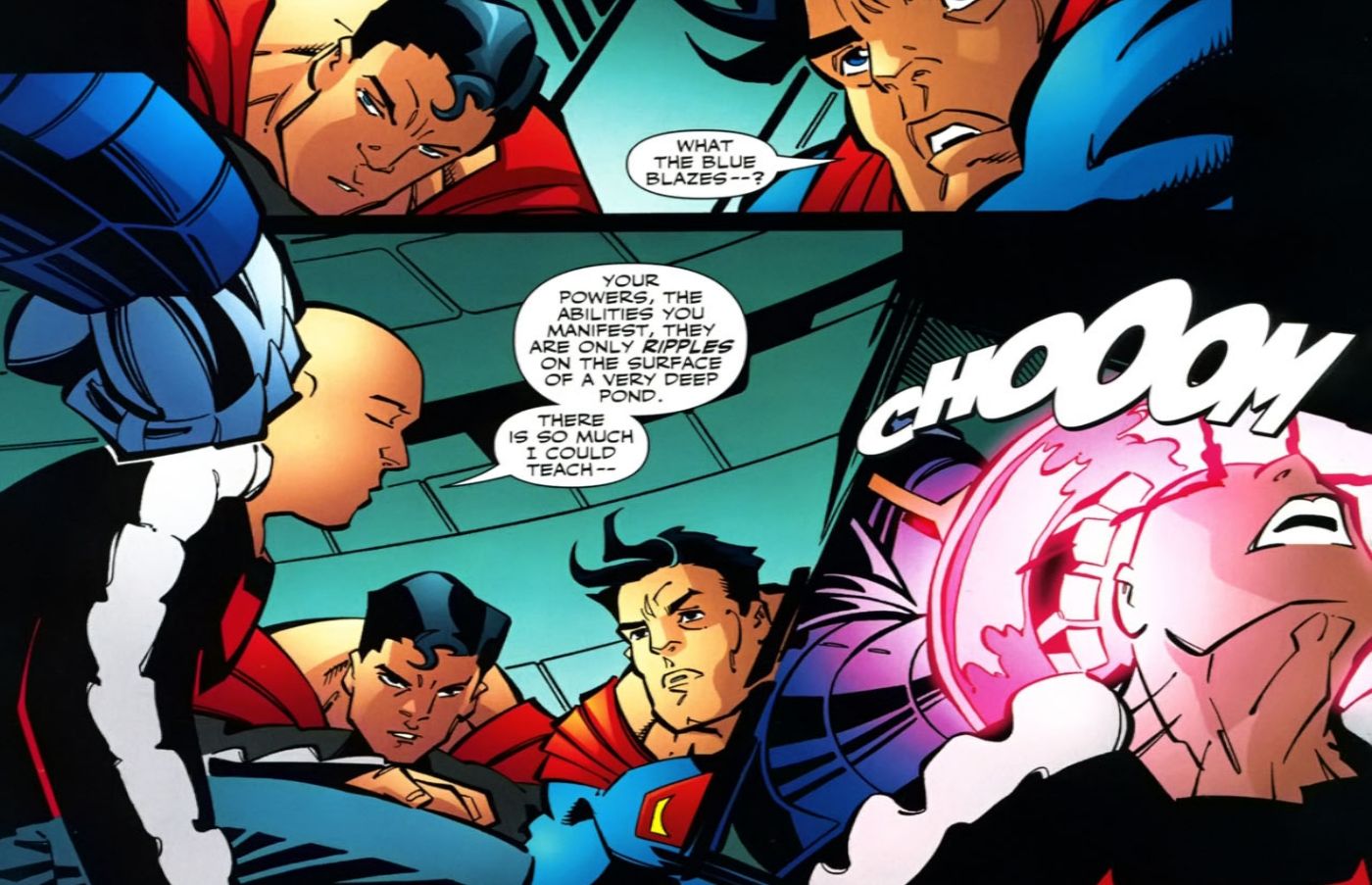 Chris Kent afirma numerosas veces a lo largo de este evento que no está haciendo nada que los otros Superhombres no puedan hacer. Incluso dice que sus poderes son sólo “Ondas en la superficie de un estanque muy profundo.” Si bien puede ser absurdo pensar en cómo Superman podría obtener aún más poderes, en realidad hay un razonamiento detrás de esto. Superman obtiene poder de la luz solar amarilla. La luz solar amarilla es solo una forma de energía, lo que significa que, con suficiente entrenamiento, Superman podría extraer energía de cualquier cosa que irradiara energía.