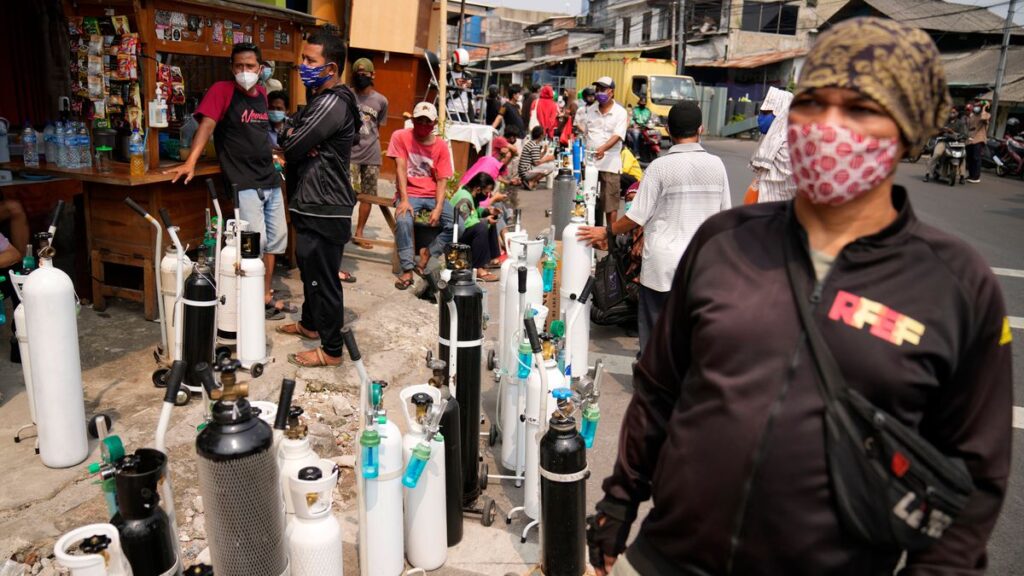 Pero la situación más preocupante se localiza en el sureste asiático. Desde finales de junio, Indonesia, la nación más grande de la región y la cuarta más poblada del planeta con sus 270 millones de habitantes, hace frente al peor brote de la zona. Tras el fin del Ramadán, el archipiélago ha rebasado el umbral de los 2,4 millones de contagios acumulados y las 60.000 muertes; este lunes se registraron 40.000 nuevos contagios y durante la semana pasada la cifra diaria superó los 30.000. La afluencia de pacientes ha colocado el sistema sanitario al borde del colapso. Los hospitales en la isla de Java han superado el 90% de su capacidad. Ante la falta de camas, los familiares de los enfermos intentan comprar sus propias botellas de oxígeno, cuyo precio se ha duplicado debido a la alta demanda.