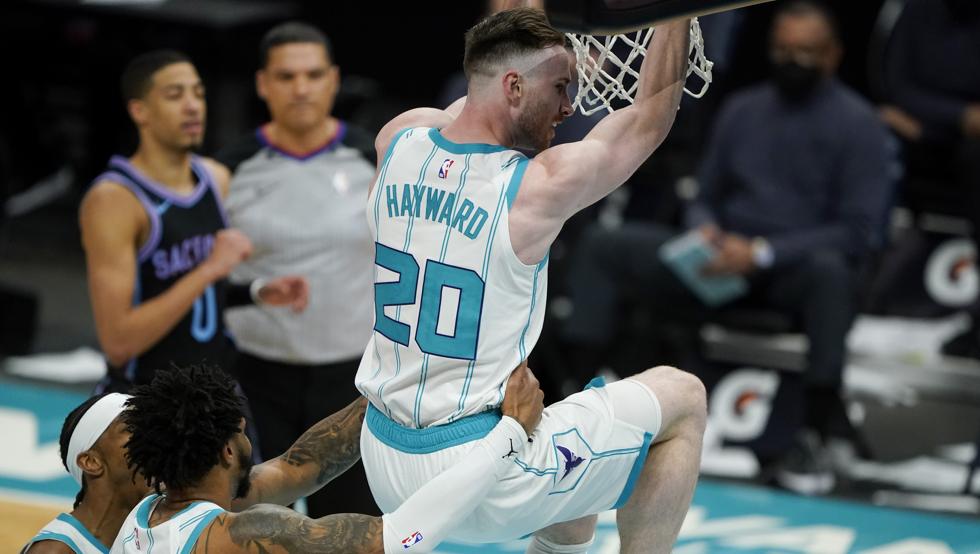 Hayward forzó un robo de balón, tomó un pase de Rozier a la contra e hizo un mate de póster a dos manos sobre el base De’Aaron Fox, poniendo de pie a la multitud restringida por la pandemia de aproximadamente 3.000 personas que se encontraban en las gradas del Spectrum Center de Charlotte.