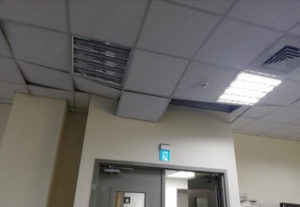 El techo derrumbado en un edificio de oficinas tras el sismo en la capital taiwanesa de Taipéi (Foto: vía REUTERS)