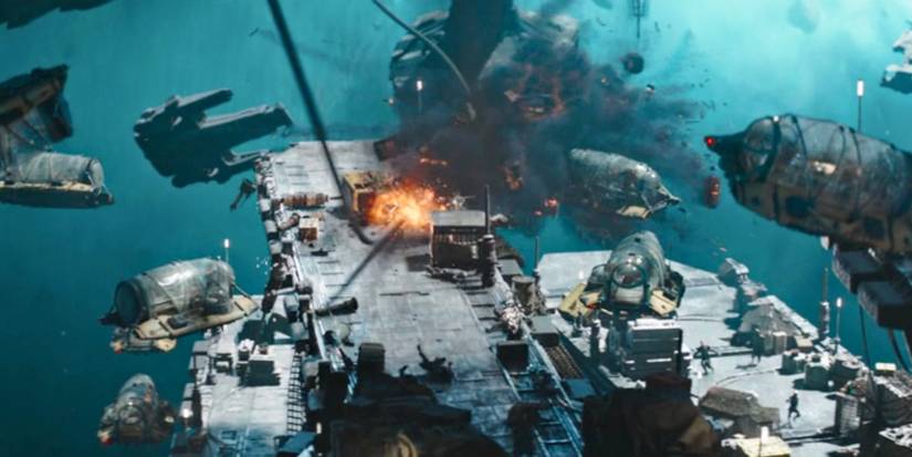 A pesar de quedar atrapado en una línea de combustible, La ceniza de ónix salta al hiperespacio de todos modos lo que resulta en un caos masivo a su paso en Port Borgo. Esto no es como otros saltos no convencionales a la velocidad de la luz vistos en el guerra de las galaxias canon como el deslizamiento a la velocidad de la luz El ascenso de Skywalker o la maniobra de Holdo en El último Jedi.