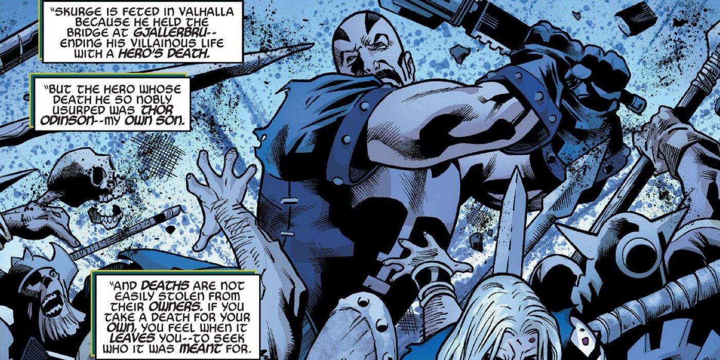 Ahora La relación de Skurge con Thor ha cambiado para siempre. y potencialmente podría terminar con la muerte del Dios del Trueno. En la cultura asgardiana, una muerte heroica como la de Skurge es muy deseable, especialmente cuando se produce en combate. Valhalla está lleno de guerreros asgardianos que cayeron en batalla, y eso ahora incluye a Skurge. Sin embargo, Skurge no estaba destinado a morir de esta manera. Robó la muerte heroica de Thor, que ha forjado una conexión entre ellos, por primera vez en sus vidas. Queda por ver exactamente cómo se desarrollará esta nueva conexión entre Thor y Skurge, pero Odin ha previsto malos tiempos por delante para el Dios del Trueno.
