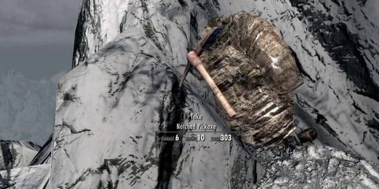 Uno de los detalles ocultos más conocidos en Skyrimy también aparentemente una referencia a Minecraft, es el pico con muescas. El pico está en la cima del mundo del pico más alto de Skyrim, la Garganta del mundo, y es completamente único y solo se puede obtener después de completar la línea de búsqueda del mismo nombre.