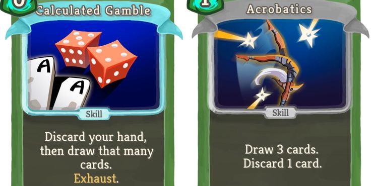 Si bien el descarte a veces puede ser negativo, es útil para cartas que tienen un efecto de “cuando se descartan” o cartas de estado negativo. Calculated Gamble actúa como una especie de tarjeta de “salir libre de la cárcel” que permite al jugador disponer de toda su mano para robar una nueva del mismo tamaño.