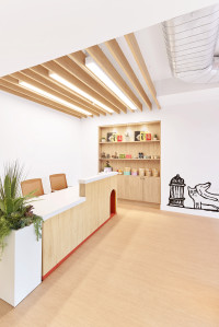 La compañía también ha repensado el espacio sanitario en sí. Por ejemplo, la sala de espera está extendida y diseñada con pequeños rincones para mantener a los animales felices y sin amenazas de sus compañeros pacientes mientras esperan.