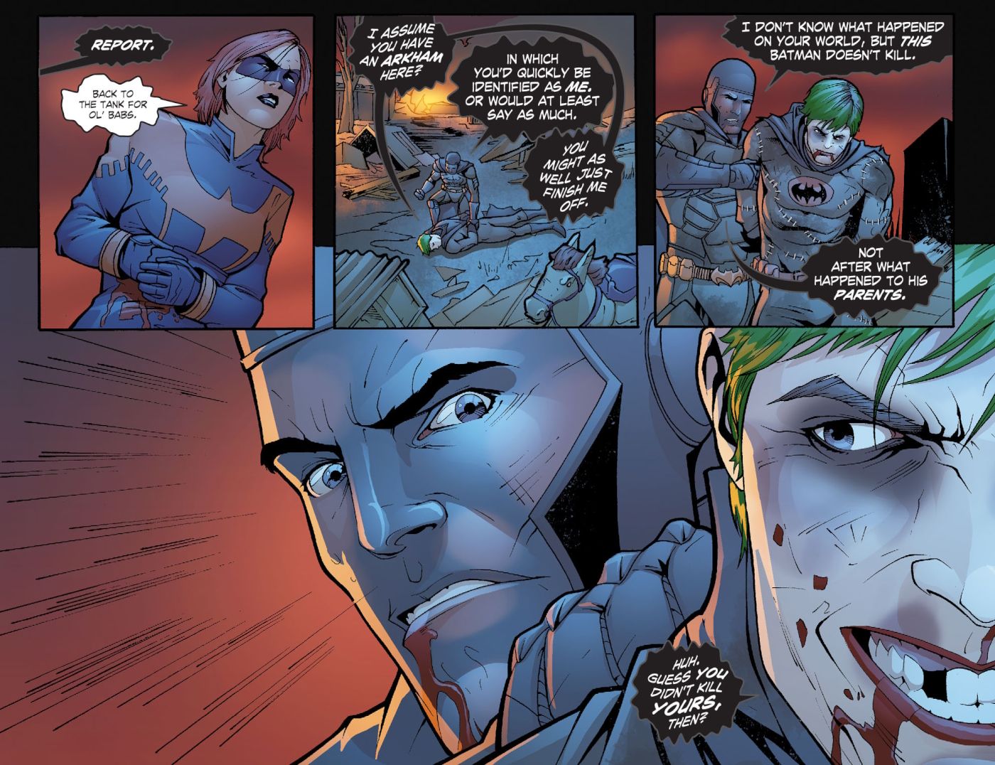 Esto incluía una versión de Bruce Wayne que asumió el papel del Joker. Si bien este personaje no se usó mucho, DC retomaría la idea diez años después en su continuidad principal.
