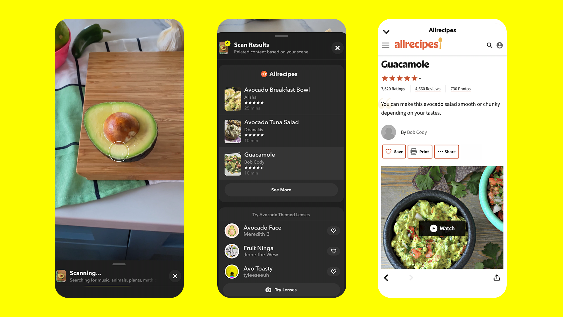 Los usuarios ahora pueden usar su cámara instantánea para escanear el atuendo de un amigo, después de lo cual recibirán rápidamente recomendaciones de compras de cientos de marcas. La compañía está utilizando la misma tecnología para otra característica próxima que permitirá a los usuarios tomar fotografías de los ingredientes en su cocina y recibir recetas de Allrecipes que los integran.