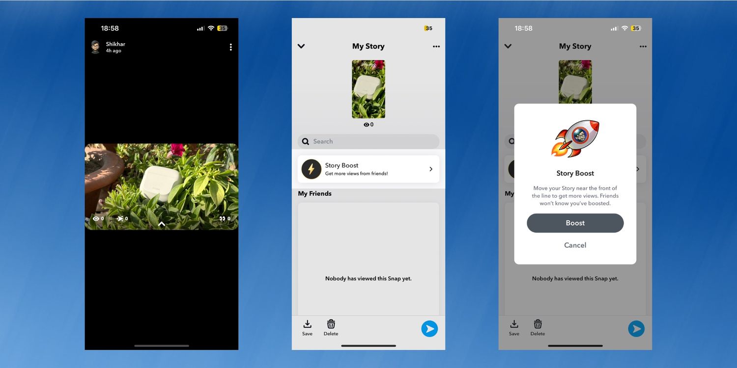 Snapchat comenzó a probar la función Story Boost el año pasado. desarrollador móvil Alessandro Paluzzi tuiteó una captura de pantalla de la función el 5 de diciembre de 2022. La función ahora se está implementando para los suscriptores de Snapchat+. Cuando está habilitado, Story Boost lleva la Historia de una persona al frente de la línea, lo que significa que otros usuarios que abran Snapchat verán esa Historia primero, dándole al usuario más vistas de las que normalmente obtendría. Además, Snapchat dice que los amigos de un usuario no sabrán cuándo han promocionado una Historia.