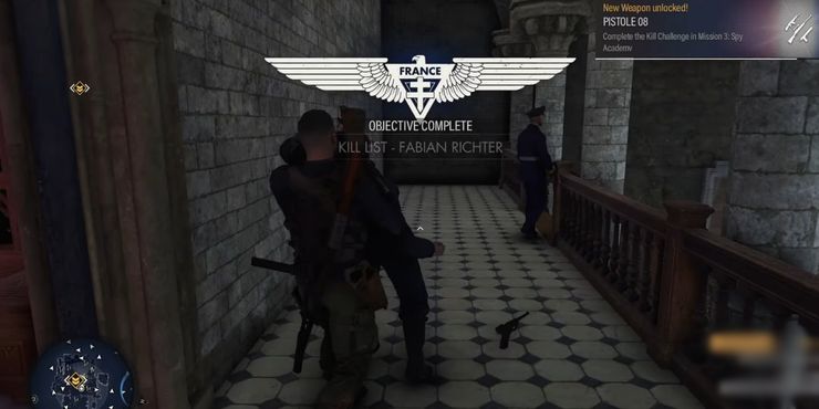 El desafío de matar de “Misión 3: Academia de espías” en francotirador élite 5 requiere que los jugadores “Mata a Fabian Richter con un derribo sigiloso..” Completar este desafío desbloqueará la Pistole 08, también conocida como la pistola Luger. A continuación se detallan los pasos para este asesinato: