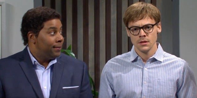 Disney + es la charla del mundo del entretenimiento después de la primera semana en línea del servicio. Sábado noche en directo optó por divertirse de una de las maneras más extrañas posibles. El anfitrión y el invitado musical Harry Styles salió de las puertas en el primer boceto como un interno británico que analiza qué conseguir para el almuerzo en la oficina. Posiblemente tome la peor decisión posible para conseguir a todos los sándwiches de pollo Popeyes para todo el equipo. Los trabajadores negros están horrorizados por la sugerencia y la escena se desvía rápidamente cuando reaccionan ante las ideas cada vez más malas sobre cómo acercarse a Popeyes en un vecindario malo. (Esto incluye gritarles a los trabajadores, entrar con una gabardina y comprar casi todos los sándwiches en la tienda). A medida que las cosas van más lejos, se revela que todo es una nueva serie limitada de Jordan Peele en Disney +. Facturado como blanco Vete protagonizada por Harry Styles.