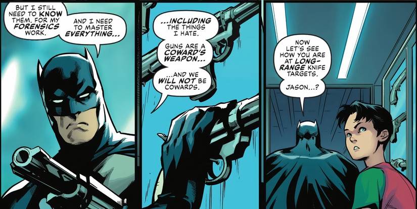 De acuerdo, ha habido momentos en que Batman ha usado armas, sobre todo durante Crisis final Cuando no tenía otra opción que usar una bala infundida con radión para detener a Darkseid. Pero ese fue un ejemplo extremo; Un escenario en el que el destino del universo colgaba de un hilo. Esto fue solo una pelea en la Batcave y, sinceramente, no es diferente de la mayoría de los otros altercados de Bruce en su guarida secreta. Batman ha sido pintado como un hipócrita de vez en cuando, pero nada tan extremo.